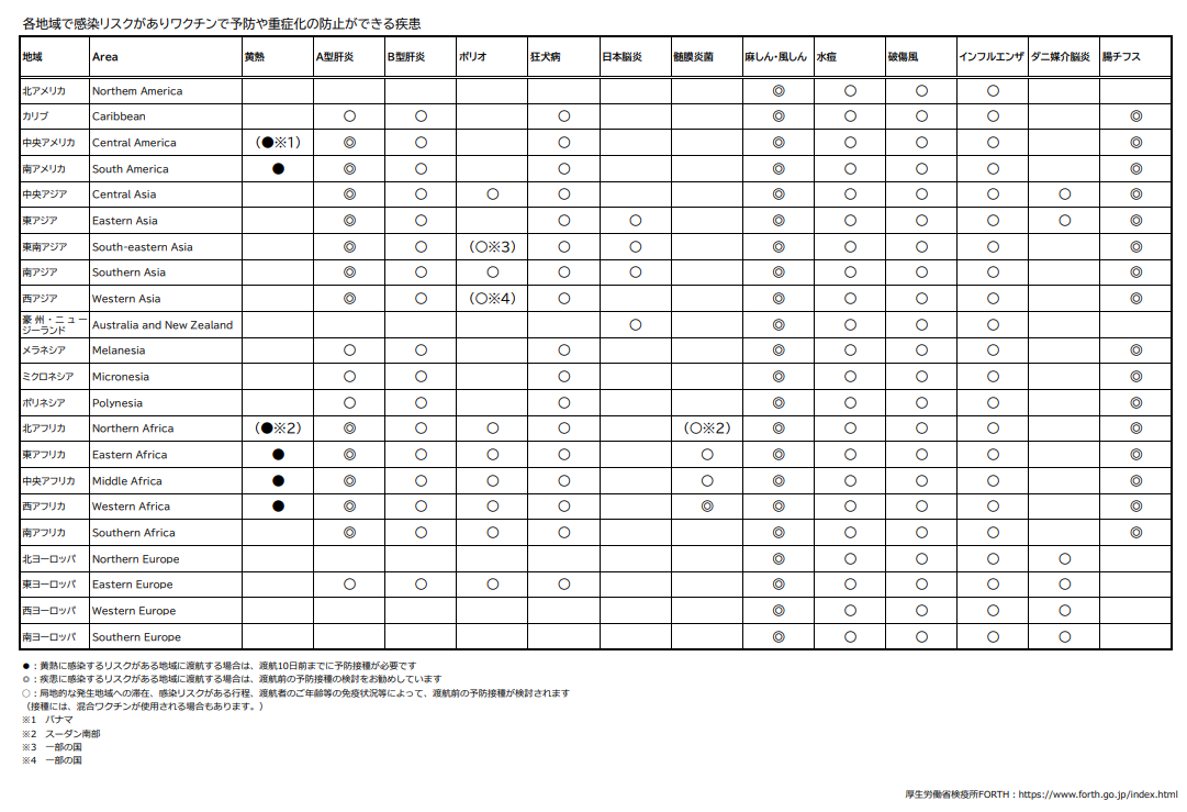 海外では日本とは異なる感染症が流行しており、渡航先によって推奨されるワクチンが異なります。